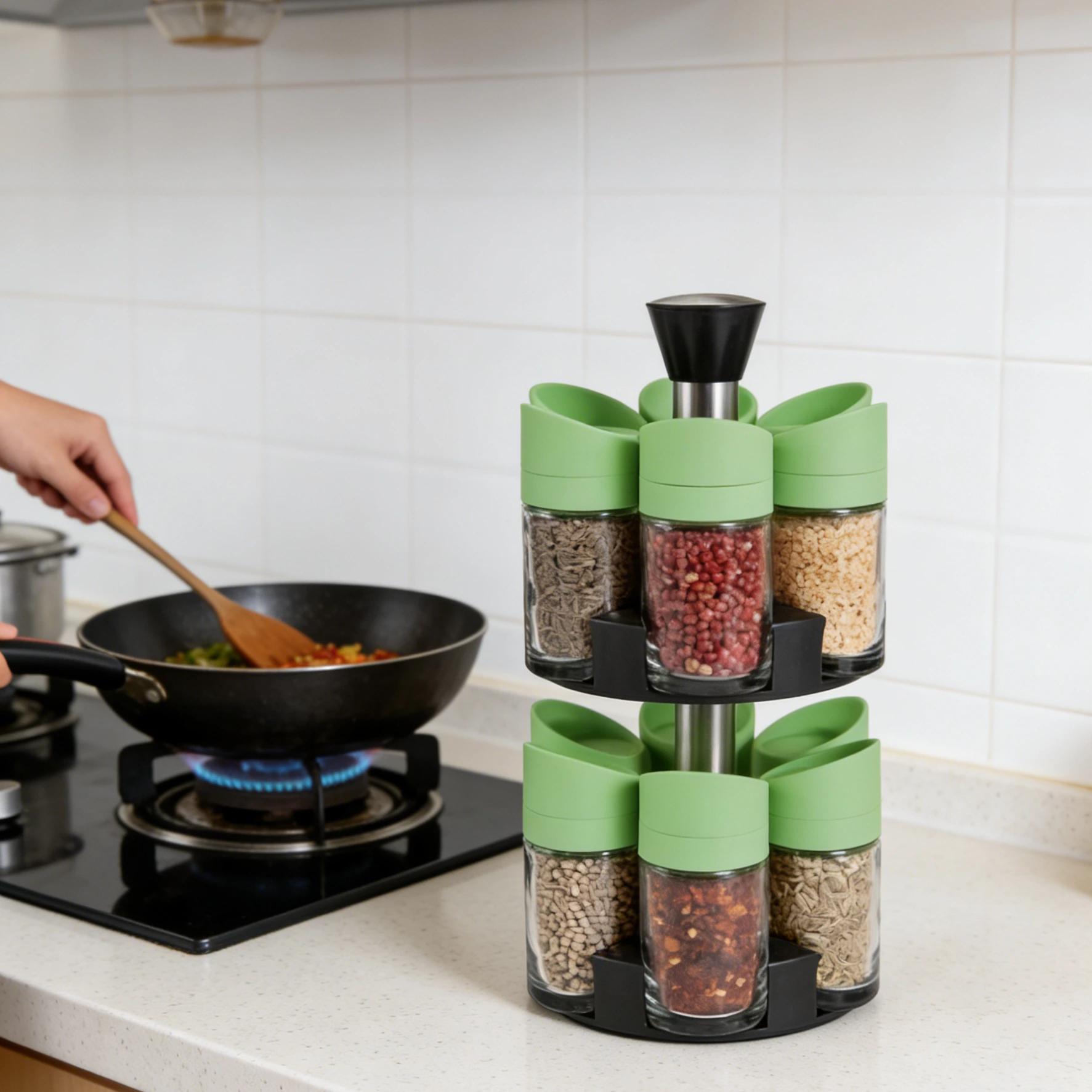 Eco-friendly materials and a vibrant modern style: At Easylife, we think useful products should be aesthetically pleasing as well. With its crystal-clear glass jars and vibrant green embellishments, the Easylife spice rack organizer stands out and gives your interior design a splash of contemporary color. To maintain the strength and fragrance of your seasonings, each glass spice jar is made of food-grade, lead-free materials. You can quickly identify spices and keep track of when it’s time for a refill thanks to the Easylife spice rack organizer’s transparent design. Improve the aesthetic appeal of your kitchen while upholding the superior quality standards for which Easylife is renowned worldwide.