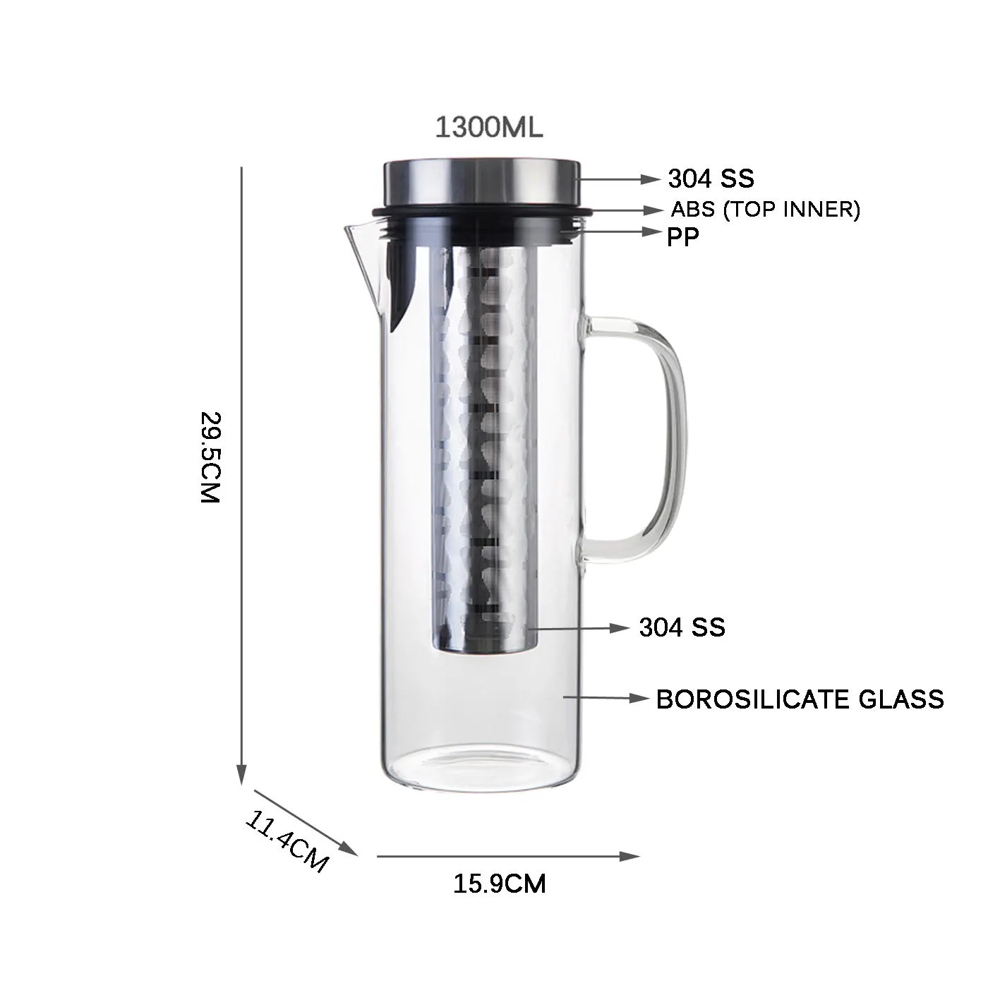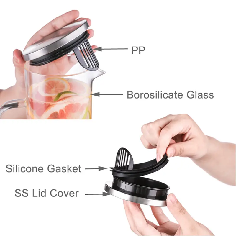 High-quality, long-lasting glass and contemporary design: Premium borosilicate glass, renowned for its resilience to heat shock and longevity, is used to create this sophisticated pitcher. As a result, it is safe for both ice-cold and boiling hot drinks. Your vibrant fruit infusions are attractively displayed by the crystal-clear body, and the attached glass handle offers a smooth and cozy grip. The pitcher gives a modern touch to any table or refrigerator with its sleek design and simple stainless steel top.