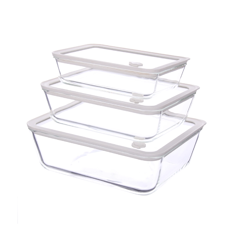 Glass Food Storage Containers with Glass Lids and Air Valve