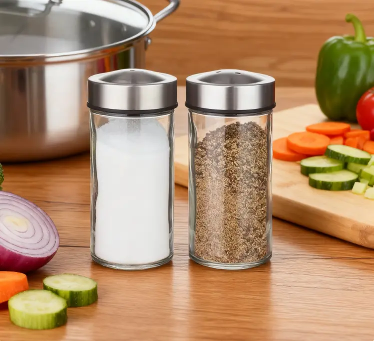 Glass Salt & Pepper Shaker with Stainless Steel Lid