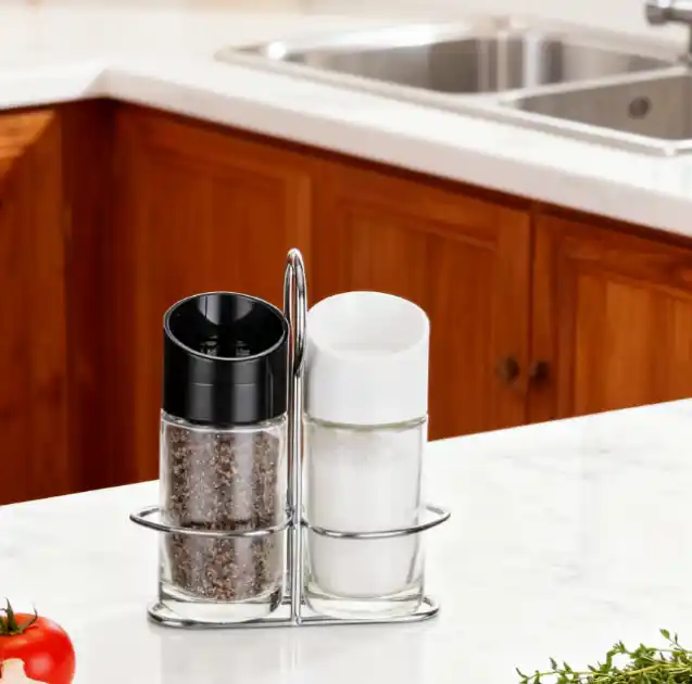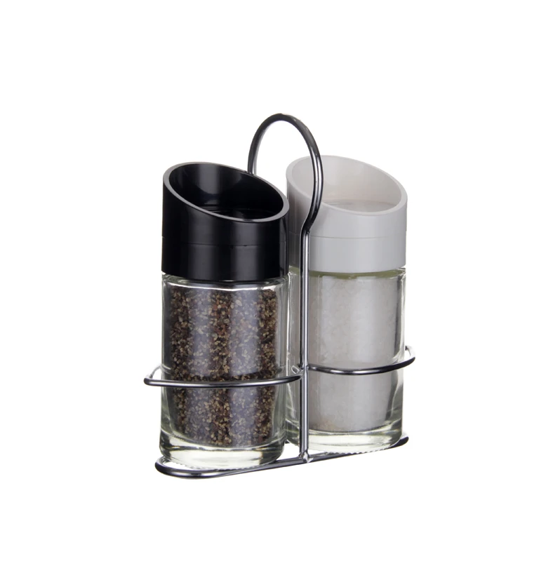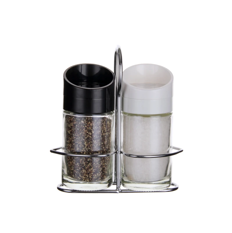 Glass Salt Pepper Shaker with Stainless Steel Stand