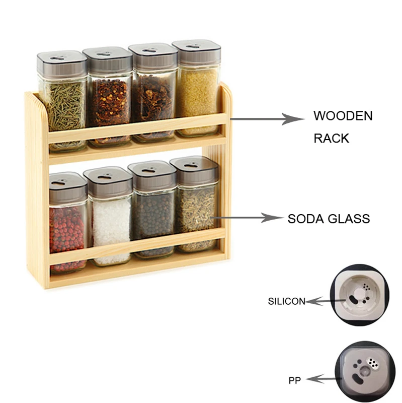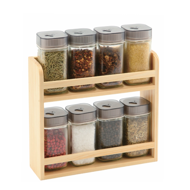 Glass Spice Shaker Bottle with Wooden Spice Holder