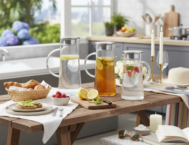 Generous Capacity for Versatile Use: These pitchers are perfect for a variety of events because of their large capacity. They have everything you need, whether you need to make a batch of iced tea for the day, keep water for everyday usage at home, or serve a big group at a party. Their usefulness is increased by the clear glass, which also makes it simple to examine the contents and level of the beverage.