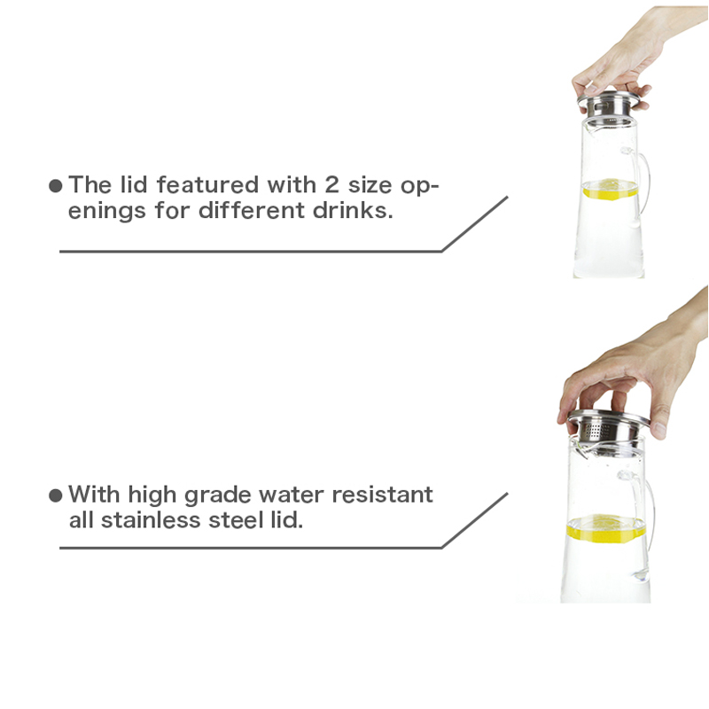 Superior Borosilicate Glass Design: This glass water jug with glass handle is made of premium borosilicate glass and has outstanding heat resistance and durability. In contrast to regular glass, borosilicate glass is resistant to breaking when exposed to abrupt temperature fluctuations, such as freezing cold to boiling hot. This ensures long-term use and safety and makes the pitchers ideal for pouring hot tea, iced lemonade, or any other beverage.