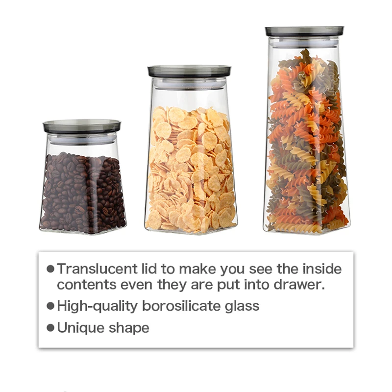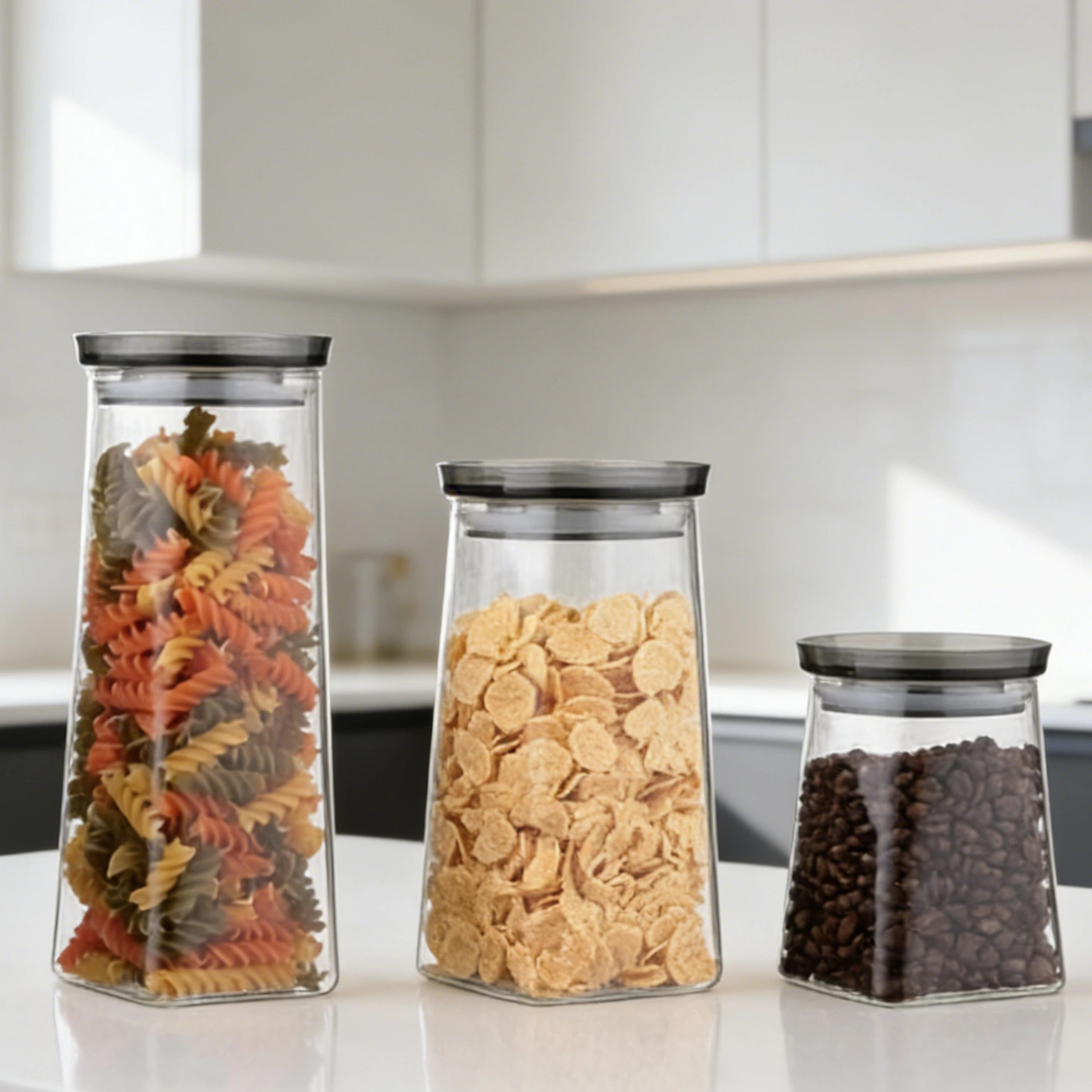 Elegant, Space-Saving Rectangular Design: Our Easylife glass canisters with sealed lids’ unique, slightly square contour is designed for maximum efficiency, in contrast to conventional round containers that waste space. The jars fit snugly side by side thanks to this ingenious design, making the most of every square inch of shelf and cupboard space. The collection provides adaptable storage options for everything from tall spaghetti to tiny spices and comes in three graduated sizes. These stackable glass storage jars from Easylife, which promote smart organization, can help turn a disorganized pantry into a well-organized, spacious storage space. Contact us to talk to an expert.