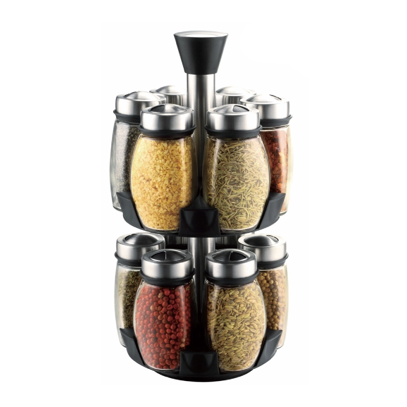 Sturdy Construction and Modern Aesthetics: This EasyLife‘s revolving spice rack has a sleek, modern look thanks to its clear glass jars, brushed stainless steel lids, and black, high-impact plastic base and frame. The long-lasting construction is ensured by the sturdy materials, and the transparent jars make it possible to quickly identify the contents. This appealing, compact design gives your kitchen countertop a touch of contemporary elegance while keeping your necessary ingredients well-organized. Reach out now for OEM/ODM services, including custom colors, branding, and packaging design.