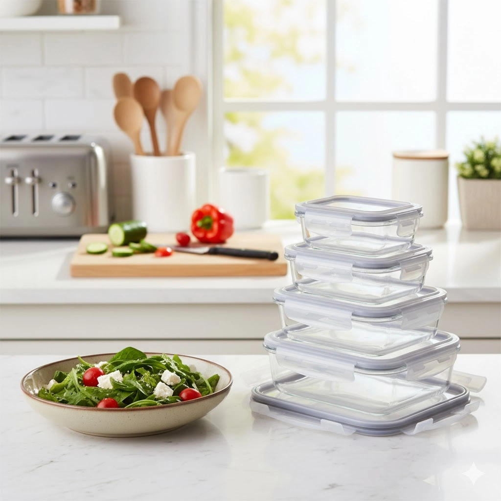 Healthy, Clear, and Odor-Free Storage: Because glass is non-porous, it won’t absorb food stains, aromas, or leftover flavors—even from potent foods like tomato sauce, curry, or garlic. This is a major health benefit. This guarantees that every meal has the proper flavor. Furthermore, the crystal-clear vision makes it simple to quickly identify meals in a busy refrigerator and minimizes the amount of leftovers that are overlooked.