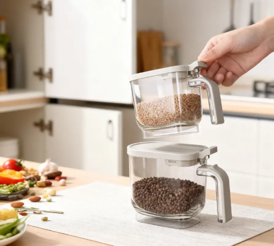 Built-In Spoon Holder for Hygiene and Convenience: The integrated internal spoon rest stores the spoon inside the container securely, preventing contact with countertops or external surfaces. This keeps the spoon clean, readily accessible, and neatly organized, promoting a more sanitary and efficient cooking experience.