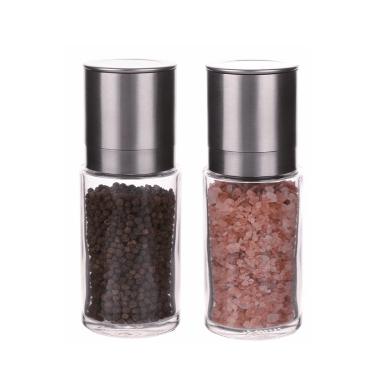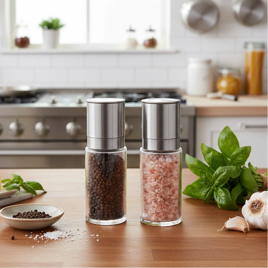 Premium Stainless Steel and Glass Construction: These stainless steel pepper grinders are crafted with a sleek, brushed stainless steel upper body and a high-clarity glass base, offering a sophisticated aesthetic for any kitchen or dining table. The transparent glass reservoir allows for immediate identification of the contents and makes it easy to monitor fill levels, ensuring you never run out of spices mid-meal.