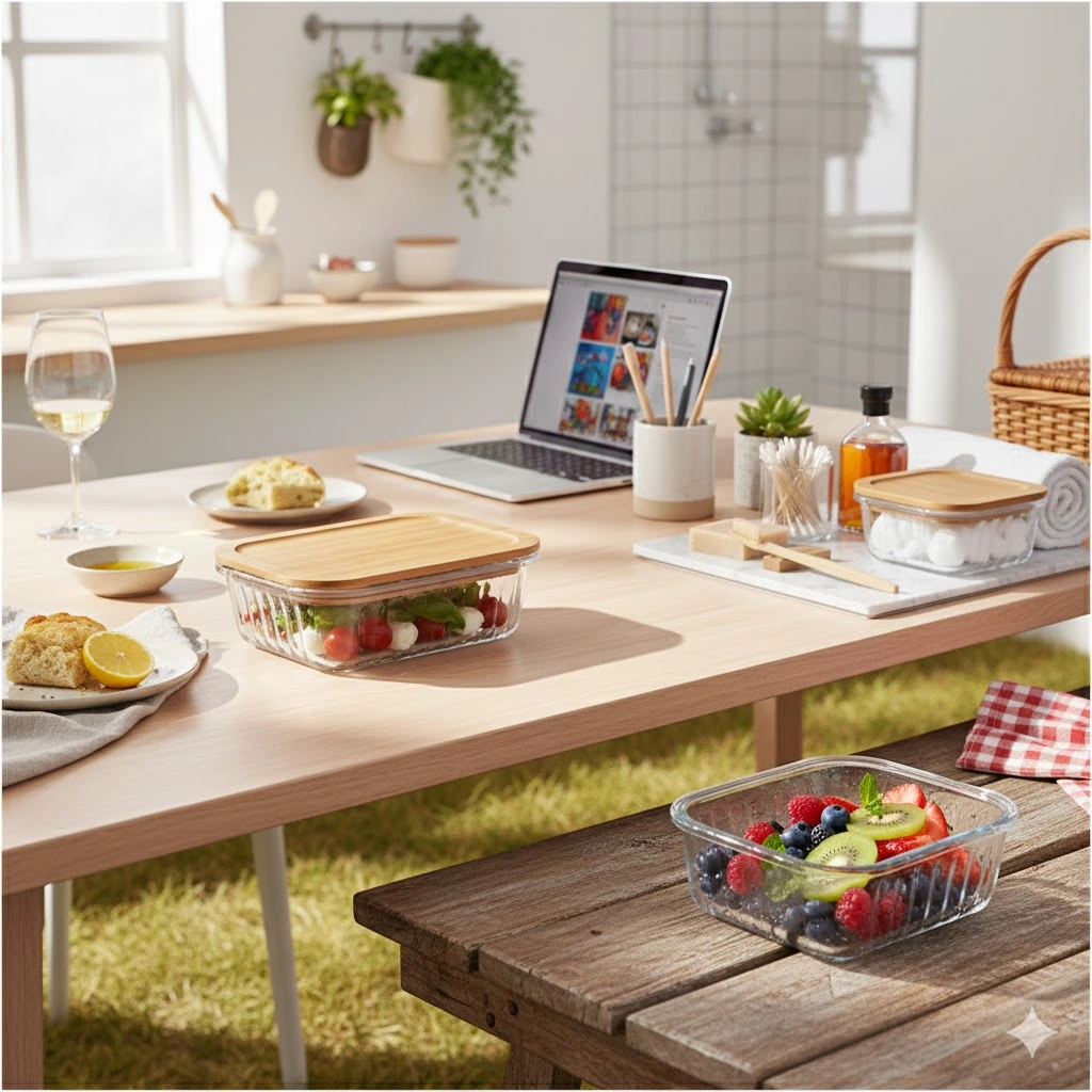 Airtight Seal Eco-Friendly Bamboo Lid: The lid’s natural, sustainable bamboo construction offers a greener substitute for plastic. It has an outstanding airtight seal thanks to a food-grade silicone ring around the outside. Whether you’re packing a lunch to go or keeping leftovers in the fridge, this seal is essential to maintaining the flavor and freshness of your food. Serving food right at the table looks fantastic because of the sophisticated bamboo finish, which also contributes a natural, contemporary appeal.