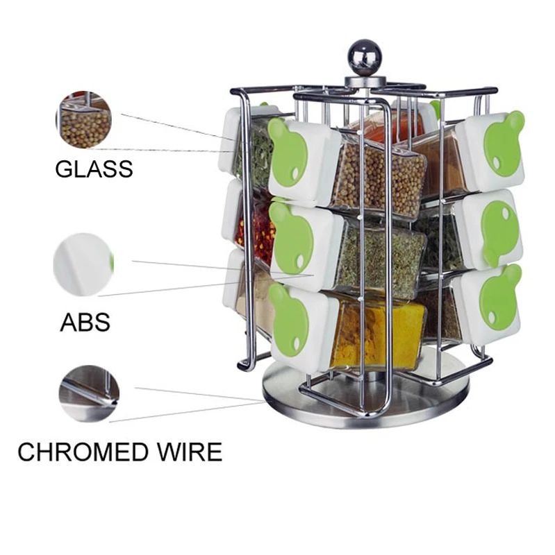 Convenient Rotating Access: The 12-jar set features a rotating base that allows for 360-degree access, making it effortless to find the exact spice you need during a busy cooking session.